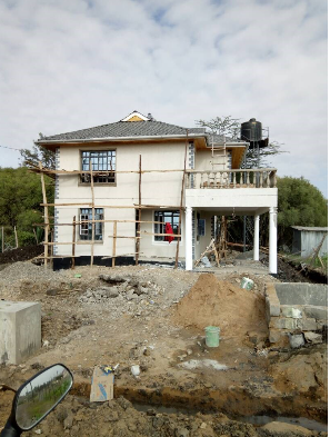This is a 4-bedroom house for Mr. Charles Munyoki in Katani. It consists of a reinforced concrete masonry structure, civil works, an underground rainwater tank, and a waste management system.